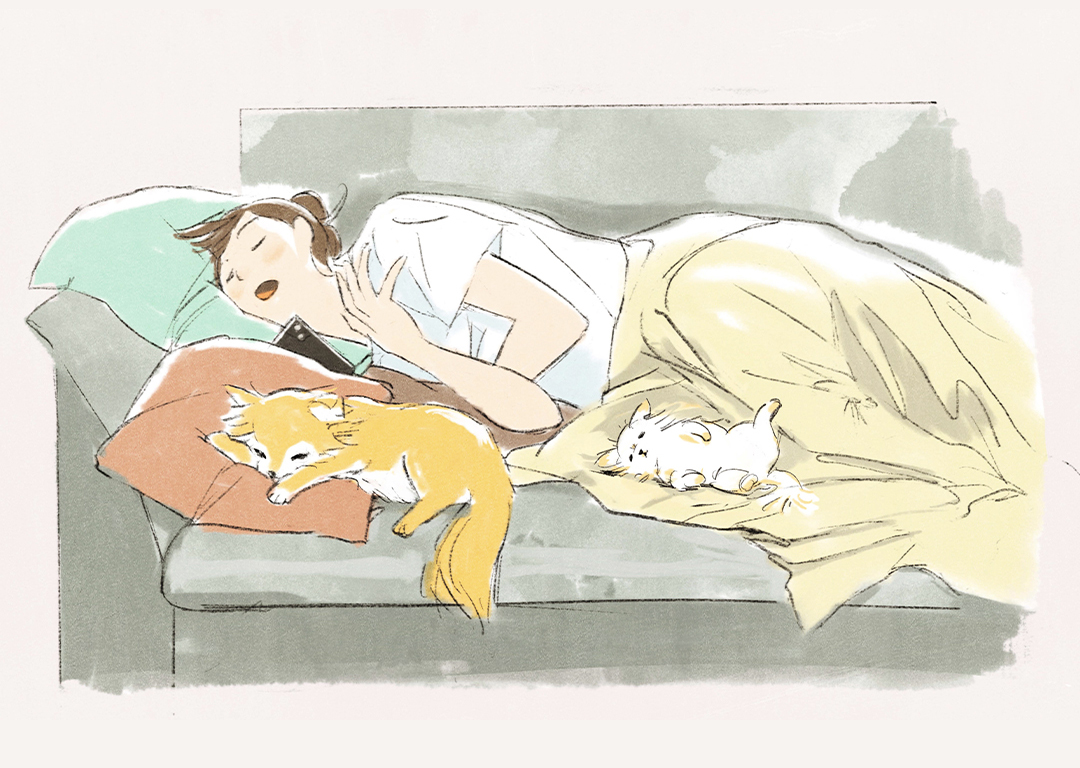 愛犬たちと一緒に実家で暮らす20代女性。犬たちに振り回される日常を楽しんでいる。